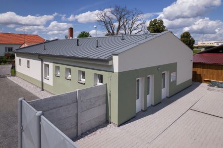 Realizace zděné jednopatrové budovy, součástí stavby je dodávka a montáž střešní krytiny, sádrokartonových konstrukcí, zdravotně technické instalace, elektroinstalace, hromosvodu, vzduchotechniky, ústředního vytápění, domovního rozvodu plynu, obkladů, dlažeb, oken a dveří. Realizace hřiště pro malou kopanou s umělým trávníkem s pískovým a EPDM granulátovým zásypem včetně odvodnění, podkladních vrstev, sportovního vybavení, oplocení z ocelových sloupků a dřevených mantinelů, polypropylenových sítí a umělého LED osvětlení. Realizace zámkové dlažby včetně podkladních vrstev a cementovápenné stabilizace.