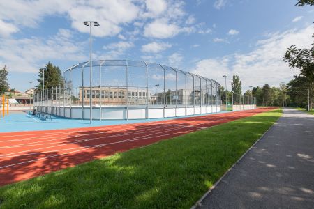 Realizace rekonstrukce sportovního areálu, jehož součástí je atletický ovál, víceúčelové hřiště a další sportovní plochy, fotbalové hřiště z přírodním trávníkem vč. výběhů z umělého trávníku, asfaltová in-line dráha, zpevněné dlážděné plochy vč. odvodnění, oplocení sportovišť, areálové oplocení, bourací a zemní práce, podkladní konstrukční štěrkové vrstvy a drenážní asfalty, kanalizační a drenážní systém odvodnění, akumulační jímky a vsakovací objekt, automatický závlahový systém fotbalového hřiště, elektroinstalace a osvětlení areálu a sportovišť, kanalizační přípojka vč. přečerpávací stanice, vodovodní a elektro přípojka, gabionová terénní tribuna k sezení založená na mikropilotech, sportovní vybavení, dětské herní a workoutové cvičící prvky, mobiliář, terénní a sadové úpravy včetně výsadby stromů a keřů. Dále je součástí stavby také výstavba zděného jednopodlažního objektu zázemí s rozvody TZB, tepelné čerpadlo (venkovní a vnitřní jednotky) a solární panely.