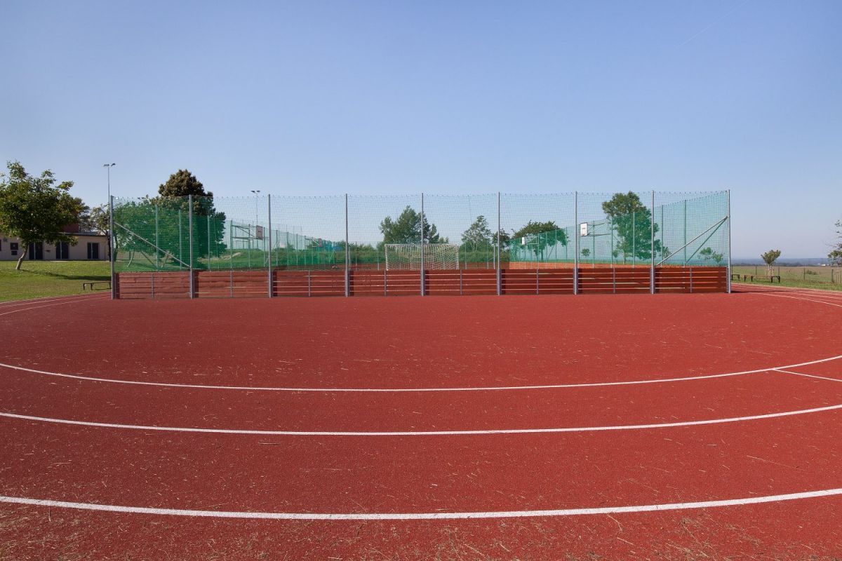 Realizace sportovního areálu SK Rudolfov - atletický ovál s vodopropustným polyuretanovým povrchem stříkaným (623,5 m2), sportovní plochy s vodopropustným polyuretanovým povrchem jednovrstvým (2044 m2), sportovní dopadová plocha pod workoutové cvičící prvky z vodopropustného polyuretanového povrchu (225 m2), realizace hřiště s umělým trávníkem 3. generace (UT3G) s pískovým a granulátovým vsypem (2100 m2), realizace zemních prací, podkladních vrstev a drenážních asfaltů, realizace odvodnění ploch (drenáže, vsakovací jímky), realizace umělého osvětlení fotbalového hřiště (osvětlenost 300 lx), dodávka a montáž sportovního vybavení, dodávka a montáž workoutových cvičících prvků, realizace oplocení sportovního areálu a hřišť, realizace terénních a sadových úprav.
